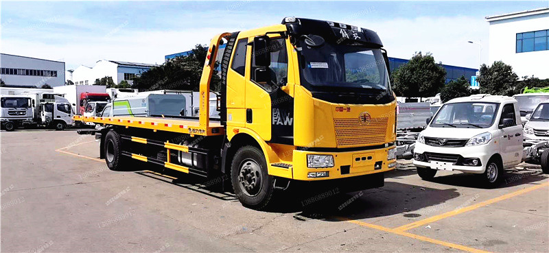 解放J6平板清障車底盤配置:解放J6L豪華寬體駕駛室,大柴180馬力 / 大柴220馬力 / 大柴240馬力 三款發動機可選,陜齒小8檔變速箱帶高低速,10.00R20鋼絲胎,方向助力,汽剎制動,斷汽手剎,原車ABS,空調,行車記錄儀,電動玻璃。